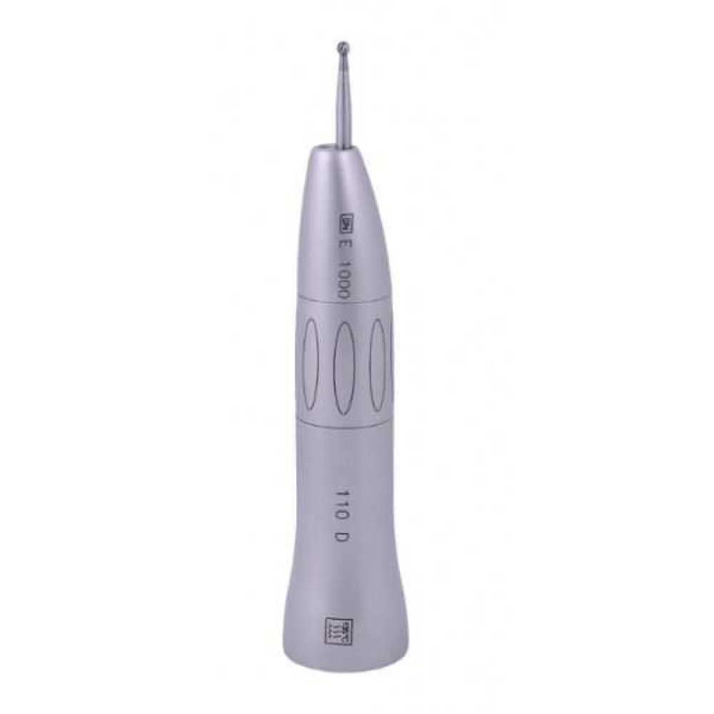 Прямой наконечник 110D относится к группе стоматологических инструментов без подсветки с приводом от микродвигателя. Соотношение передачи оборотов микродвигателя у этого типа наконечника составляет 1:1.