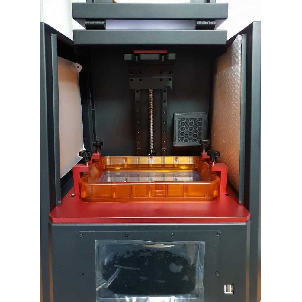 - Простая установка ванны для печати, что делает процесс очищения ванны или смены пленки лёгким и быстрым. Просто разместите ванну над экраном и закрепите гайками блокировки.