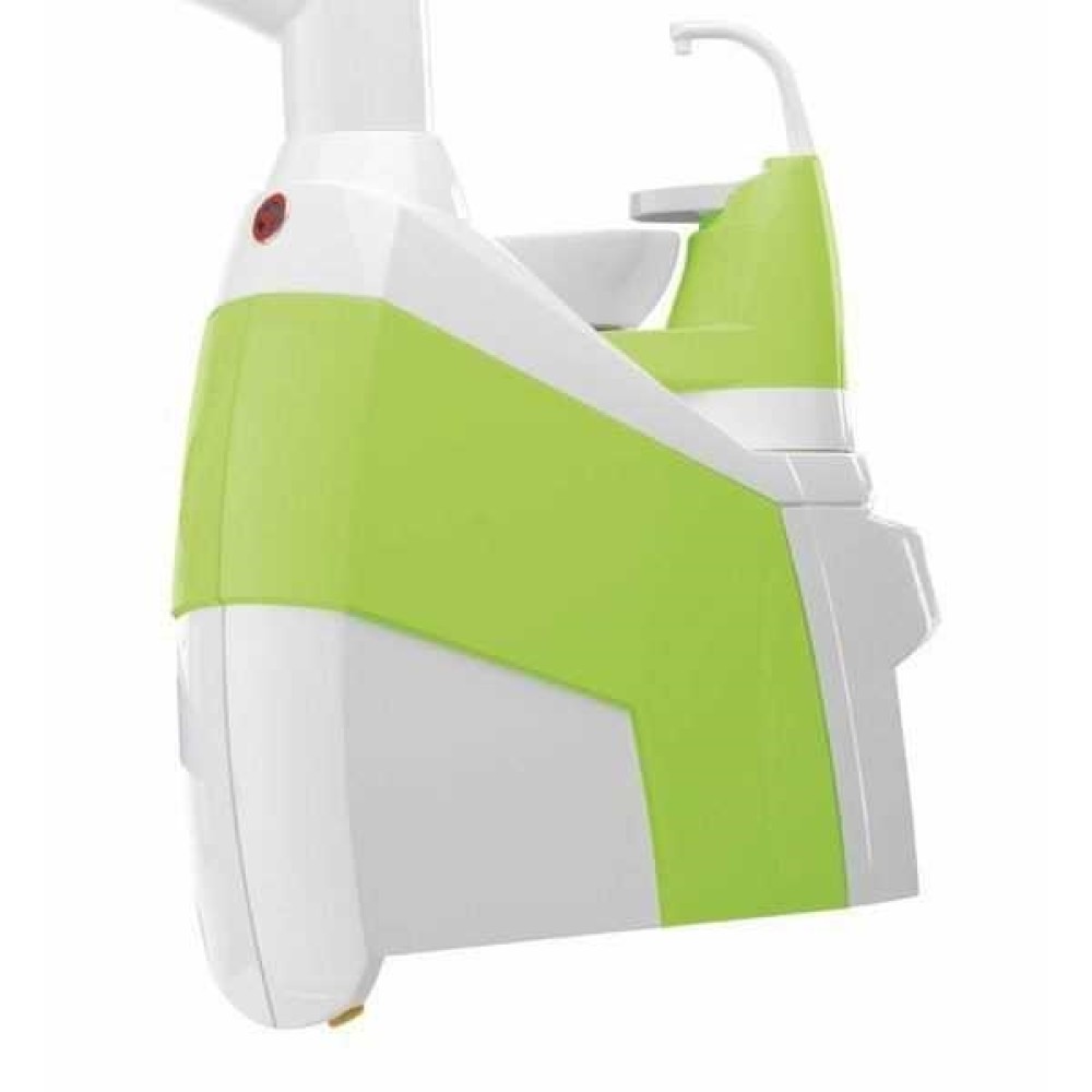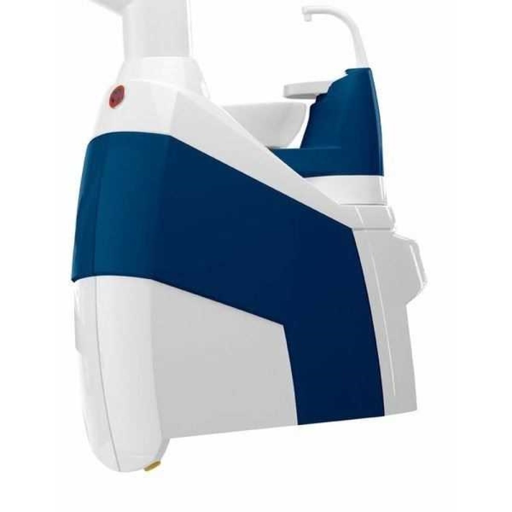 - Съемная керамическая поворотная плевательница со съемными элементами подачи воды в стакан и плевательницу (ручное вращение на 160), оснащена датчиком, определяющим наличие стакана, подогрев воды