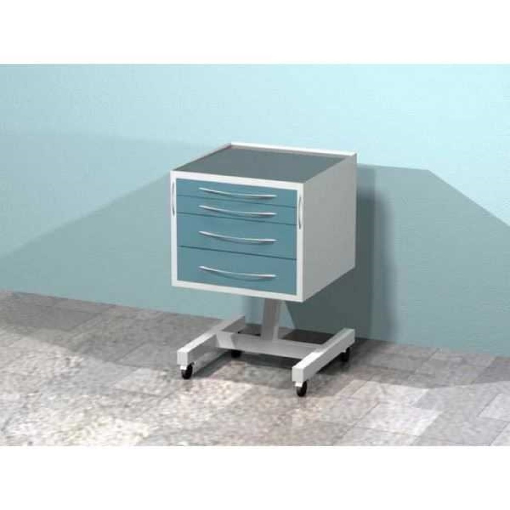 AR-34.1 - передвижной столик с четырьмя выдвижными ящиками, сверху стекло (на квадратной ноге)