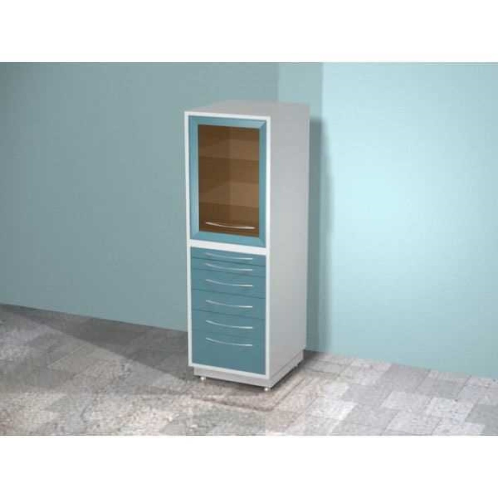 AR-83C - шкаф с распашной застекленной дверью, двумя стеклянными полками, шестью выдвижными ящиками, бактерицидной лампой Philips