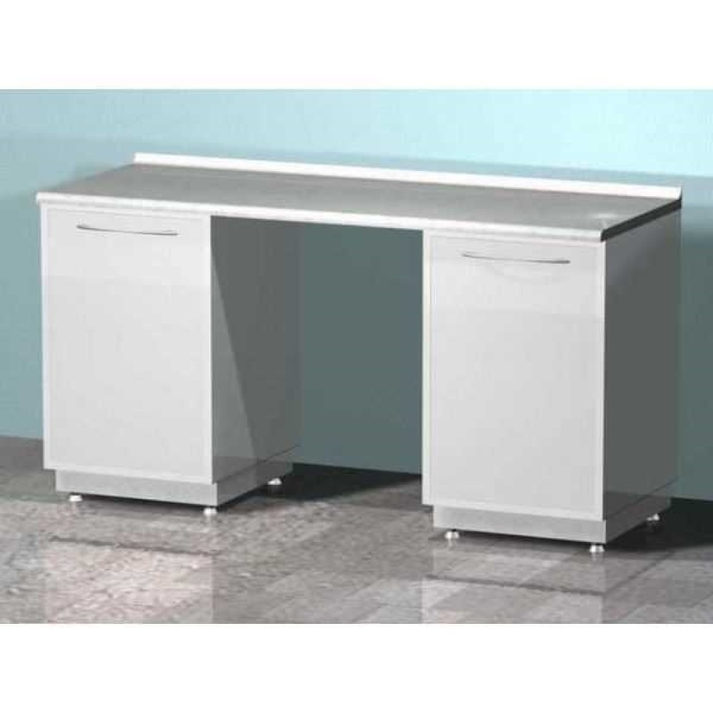 AR-L01 - стол лабораторный двухтумбовый (две тумбы с распашными металлическими дверями, между тумбами рабочая поверхность), на столешнице стекло