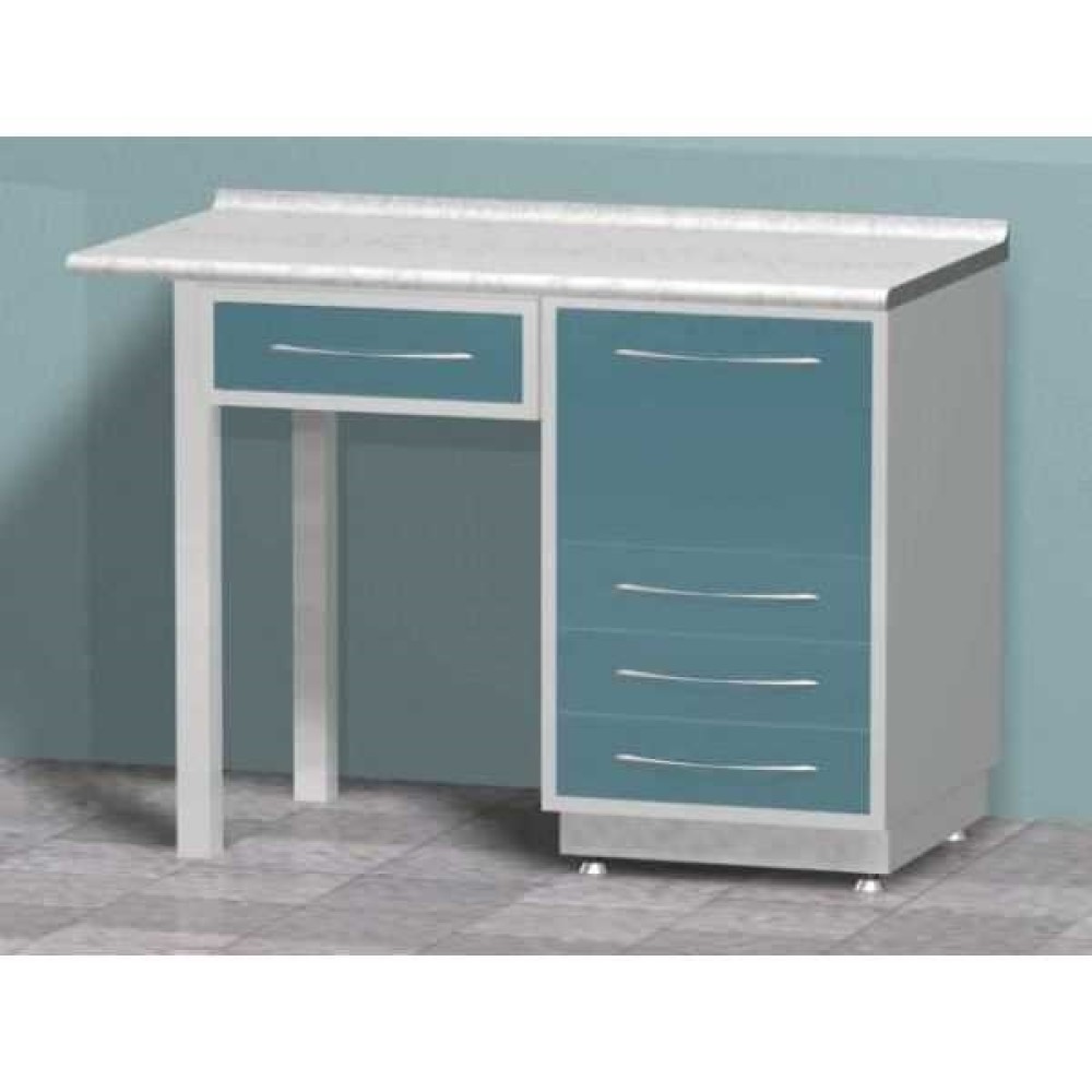 AR-L44 - стол лабораторный (тумба с четырьмя выдвижными ящиками и выдвигающимся ящиком), на столешнице стекло
