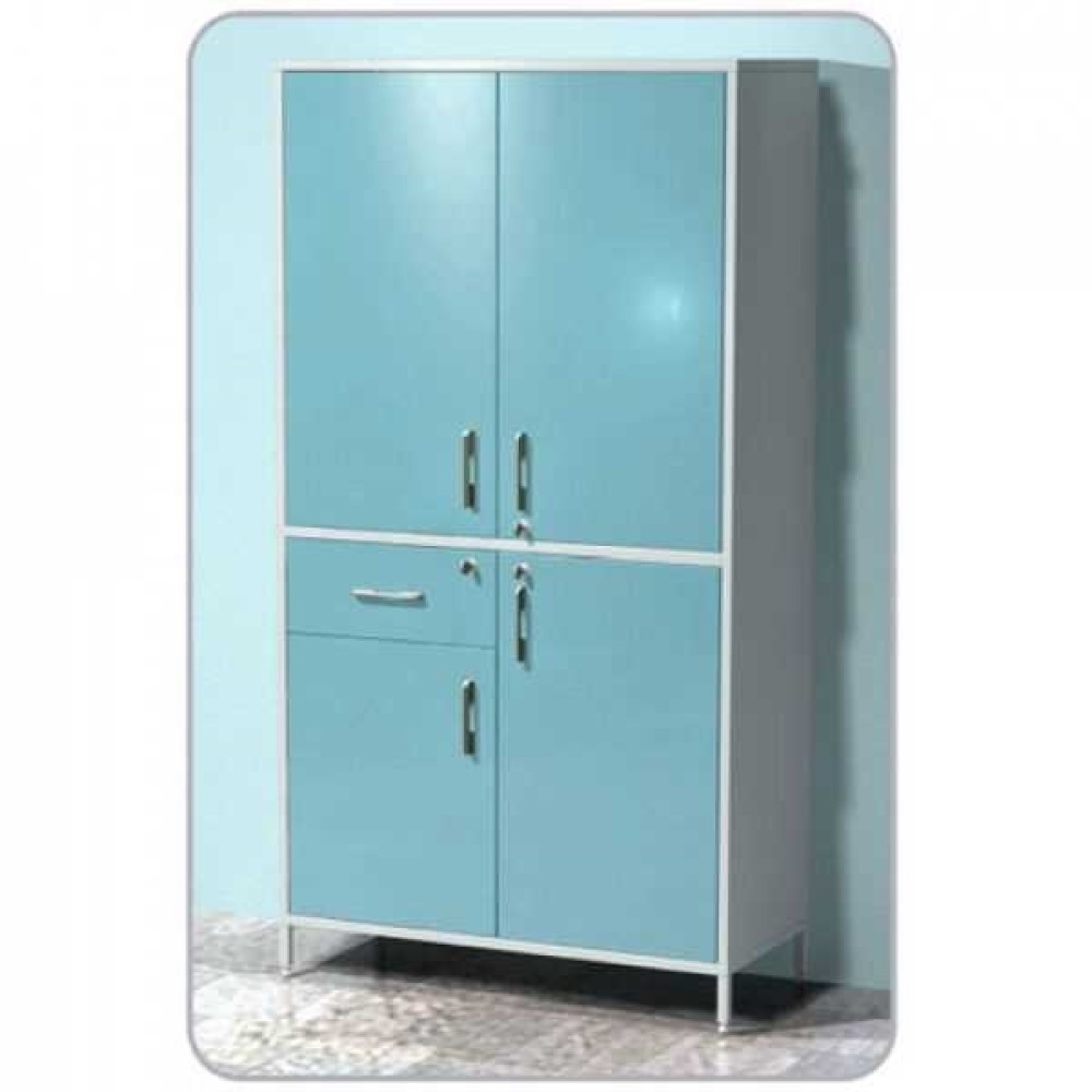 AR-X101 - шкаф с двумя распашными металлическими дверьми, двумя металлическими полками, выдвижным ящиком с замком, распашной металлической дверью с полкой, распашной металлической дверью, с замком, металлической с полкой