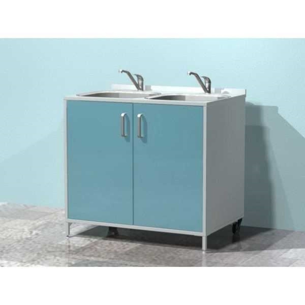 AR-X24 - металлическая тумба с двумя распашными металлическими дверями, двойной мойкой и 2 смесителями