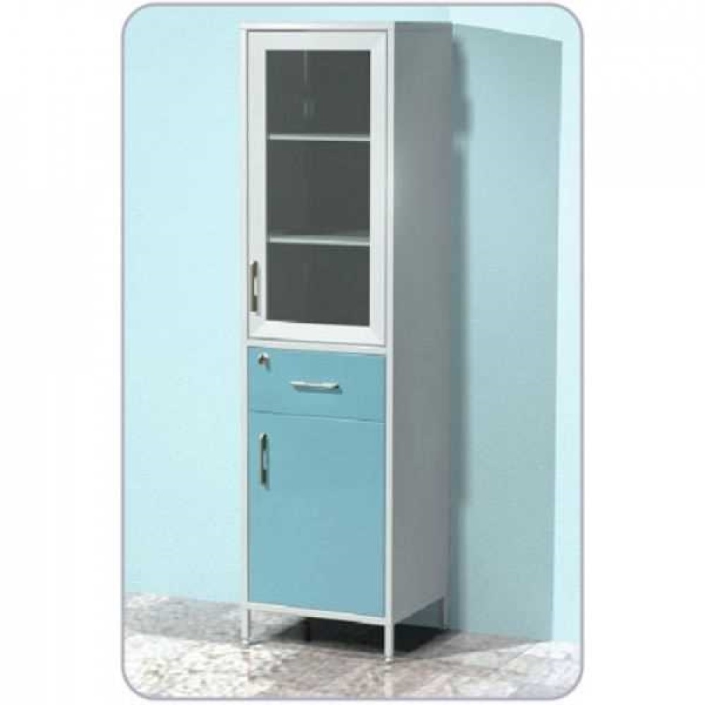 AR-X63 - шкаф с двумя распашными дверями - застекленной и металлической, тремя металлическими полками, одним выдвижным ящиком с замком