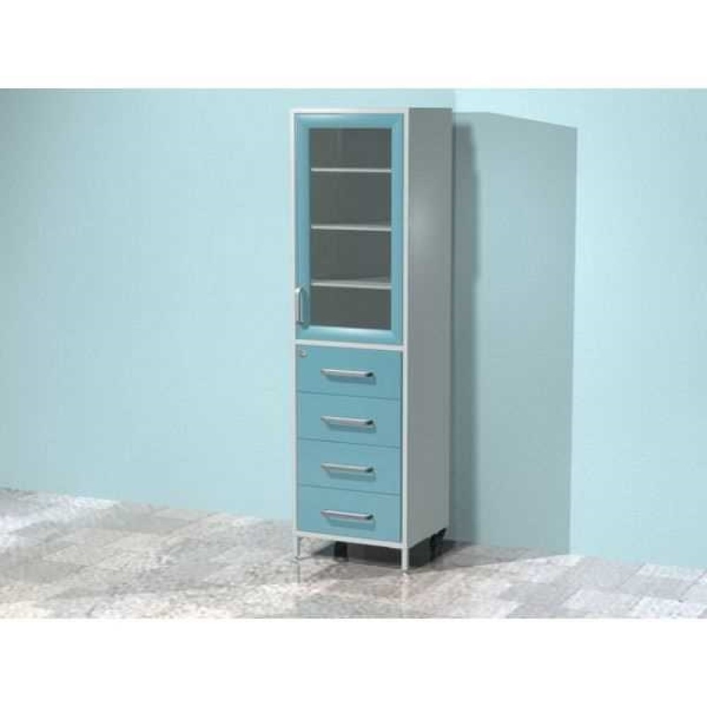 AR-X82 - шкаф с распашной застекленной дверью, двумя металлическими полками, четырьмя выдвижными ящиками с замком