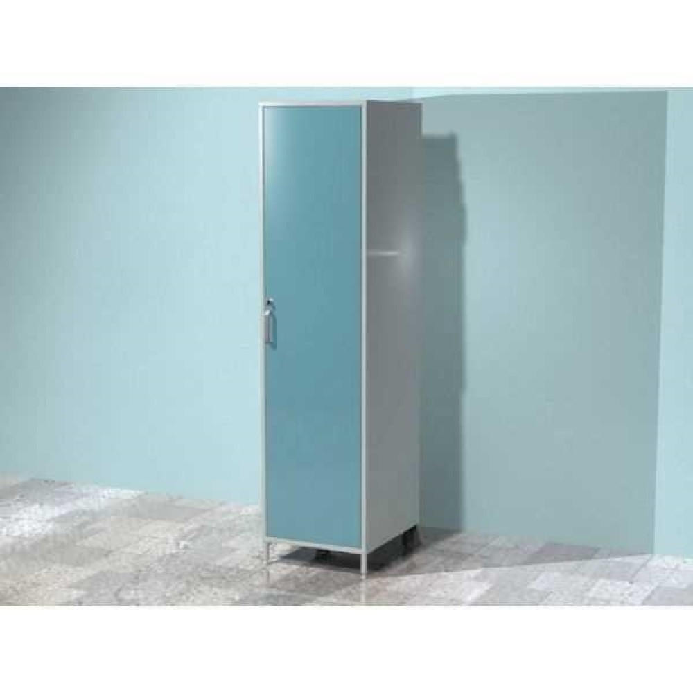 AR-XA21 - шкаф с распашной металлической дверью, с замком, двумя металлическими полками, шторкой, отделяющей рабочую одежду