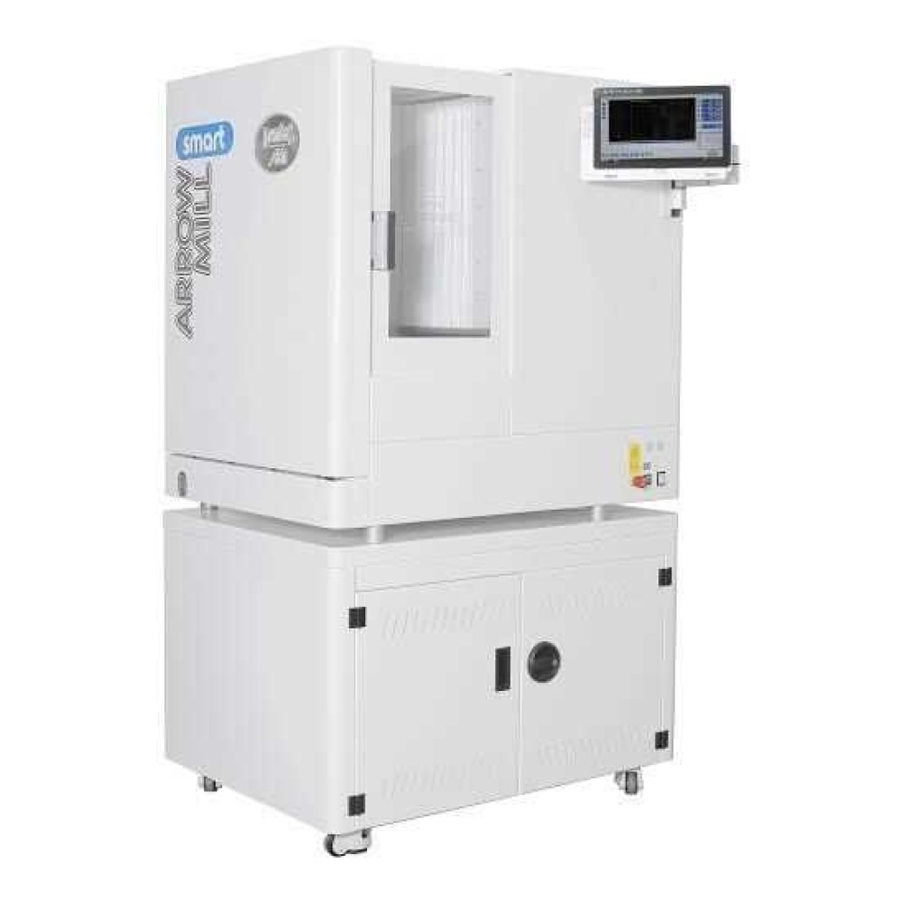 Arrow Mill SMART является уникальным 5 осевым фрезерным станком с ЧПУ для влажного и сухого фрезерования различных материалов.. Эта машина обеспечивает высокую точность работы, эффективность, качество и производительность и поднимет Ваше лабораторное значение на рынке. Обработка является очень точной для всех доступных материалов: ПММА, CoCr и титановых сплавов, циркония и других. Базовая конструкция сделана из литого сплава железа, что обеспечивает высокую повторяемость и сводит к минимуму вибрации. Все электронные и механические компоненты от крупнейших производителей в промышленном машиностроении. Из-за своего компактного размера машина подходит даже для небольших лабораторий, которые нуждаются во фрезеровании металлов, а не только мягкого материала.