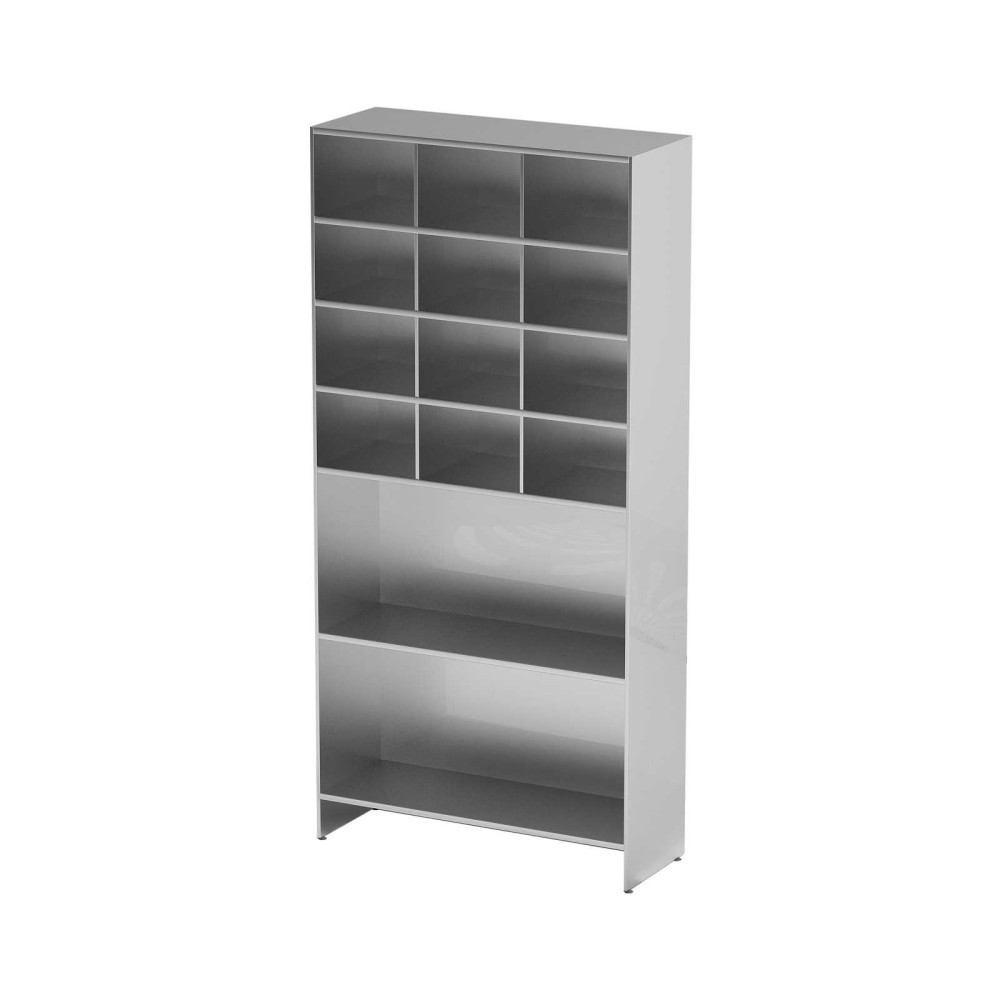 AT-S07 - шкаф-стеллаж для одноразовой одежды, нержавеющая сталь, 2 полки, 12 ячеек