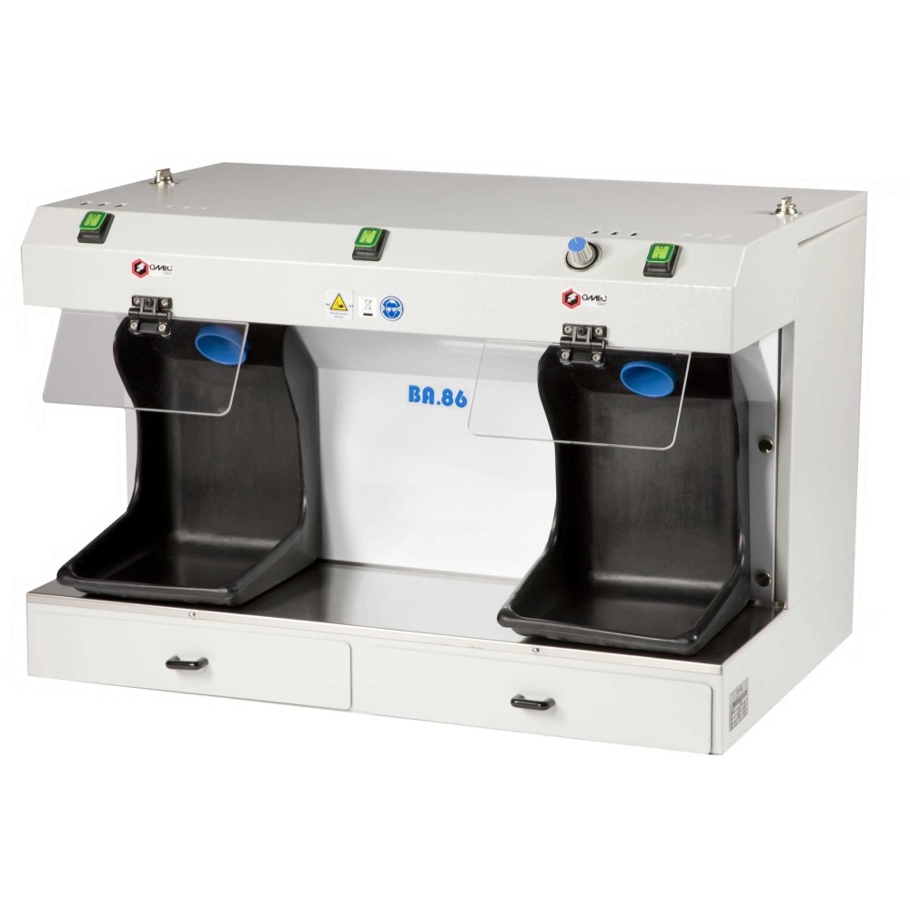 Бокс для шлифмотора BA.86.2V, с встроенным вытяжным устройством и освещением. Предназначен для защиты от пыли и грязи при полировке зуботехнических изделий.