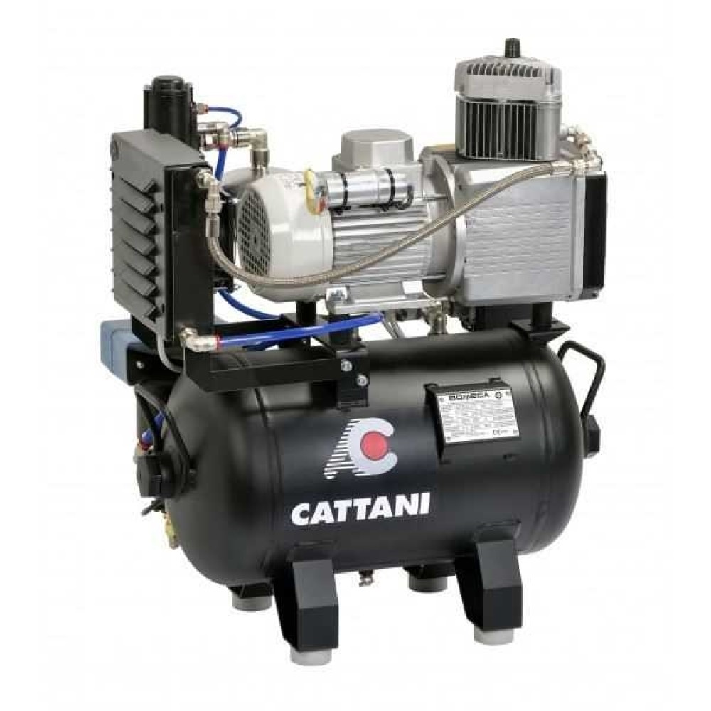 Компрессор стоматологический CATTANI - одноцилиндровый, безмасляный, в металлическом разборном шумозащитном кожухе.
