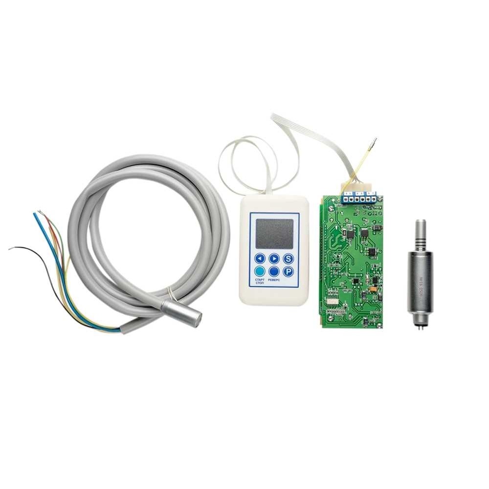 - С микромотором ДП-5.02 и цифровым пультом (скорость вращения 1000-40000 об/мин, внутренняя подача воды и воздуха (спрей), LED подсветка) (08-0240502) - 50 450 рублей
