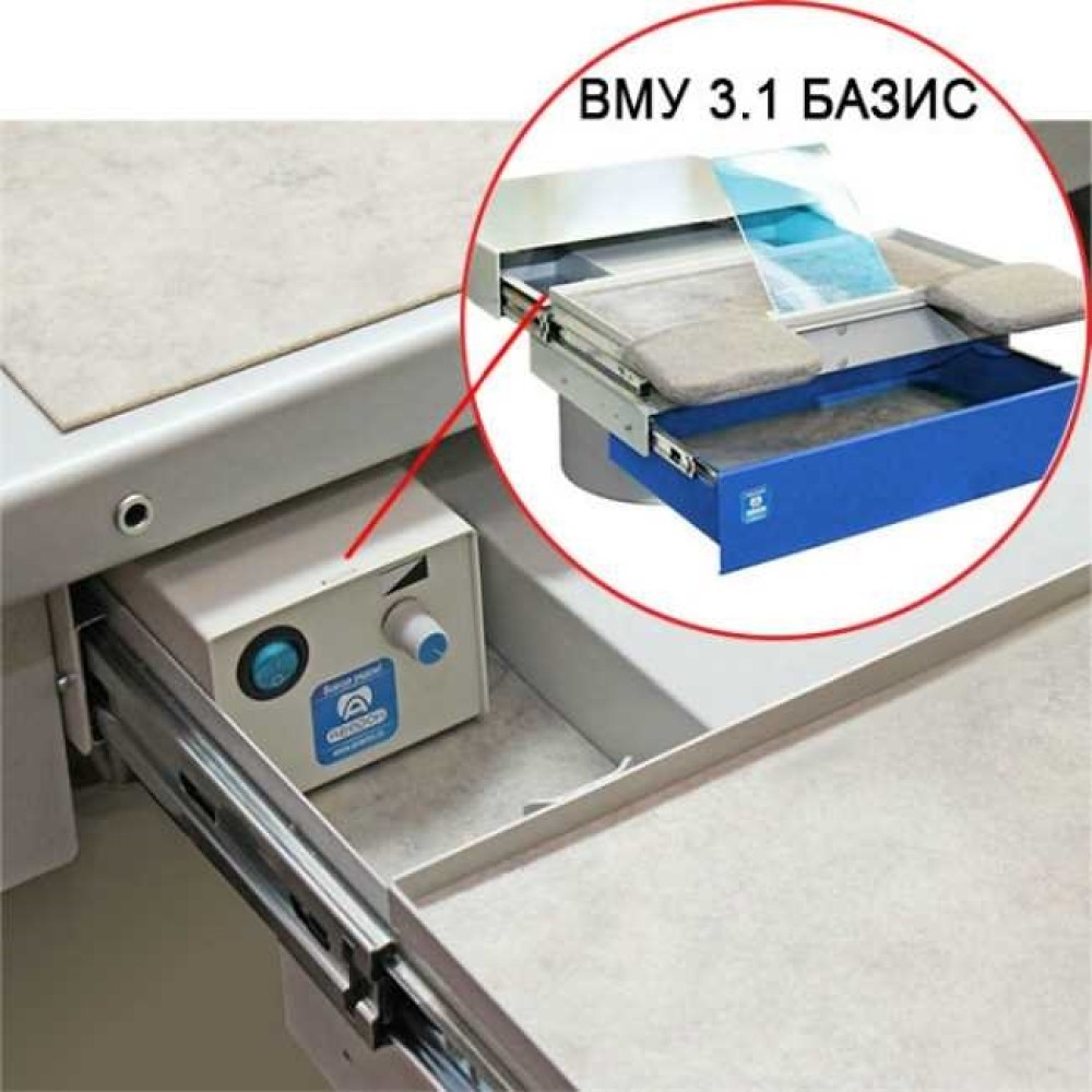 БРМ 2.1 ВМУ - блок регулятора мощности для работы только с ВМУ 3.2 БАЗИС, ВМУ 3.1 СТАРТ, ВМУ 2.0 МАСТЕР НЬЮ. Предназначен для автоматического включения/выключения вытяжки при выдвигании/задвигании столешницы ВМУ и изменения мощности всасывания. Обеспечивает плавные пуск и торможение двигателя пылесоса, что снижает износ щеток двигателя ПВУ.
