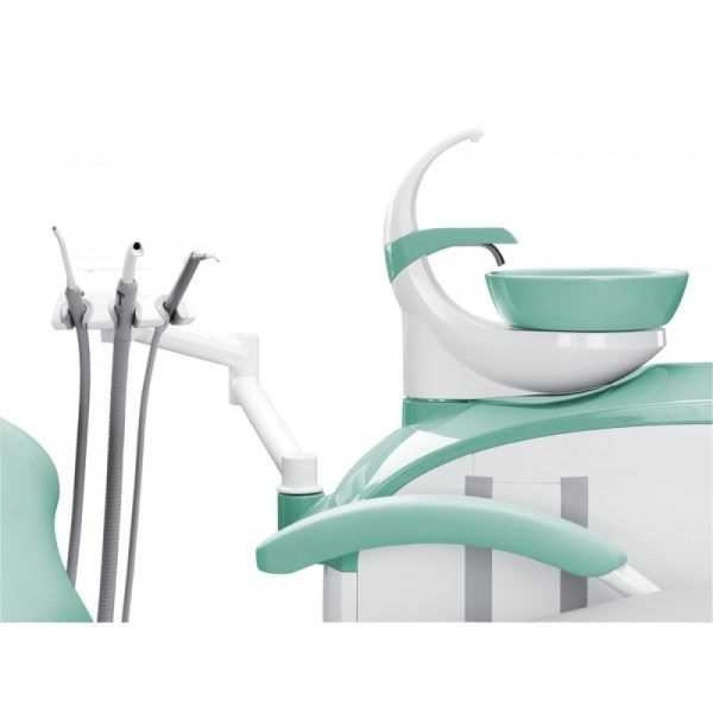 Конструкция установки позволяет организовать рабочее пространство максимально эффективно, а система электропневматического торможения консоли врача и управление поворотом чаши плевательницы обеспечат дополнительный комфорт во время лечения.