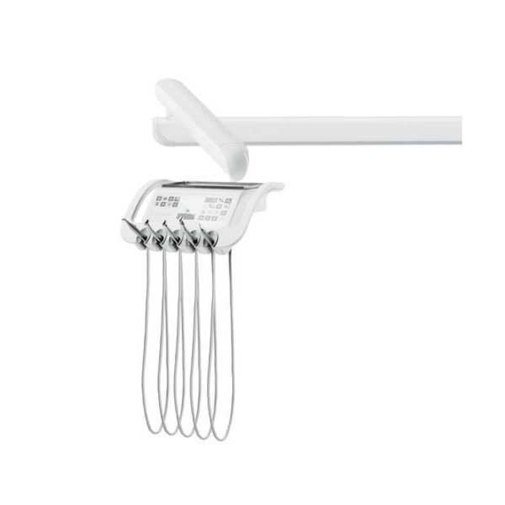 Столик врача с нижней подачей оснащен высококачественными инструментами, разработанными швейцарской компанией Bien-Air. Сенсорная клавиатура гарантирует максимально удобное управление, легкую очистку поверхности и высокую надежность. Пантографическое плечо столика врача доступно как в стандартной, так и в укороченной версии.