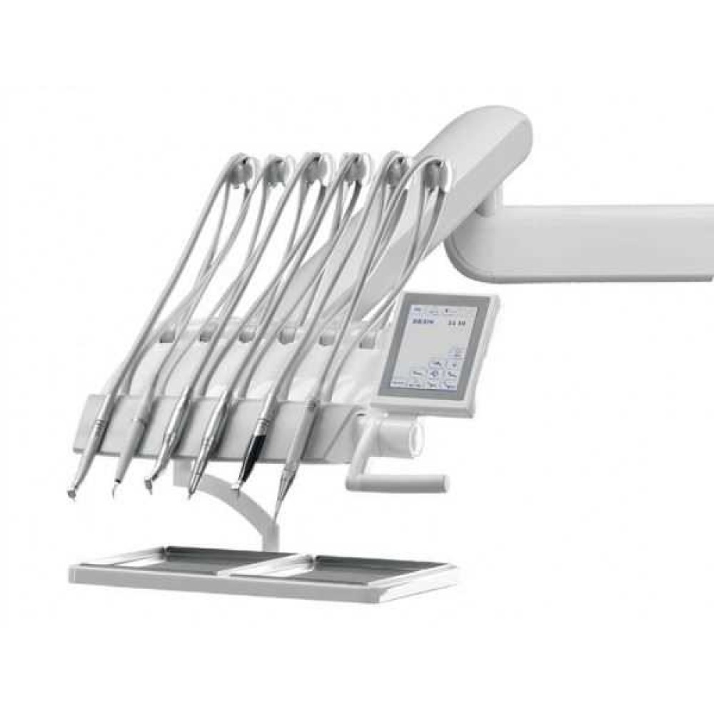 При создании этой модели были использованы самые современные конструкторские решения: сенсорный LCD-дисплей, электронная система контроля количества охлаждающей воды для инструментов, настройка крутящего момента для бесколлекторных микромоторов, десять свободных программ для сохранения личных настроек, а также многие другие полезные функции, существенно облегчающие работу стоматолога и ассистента.