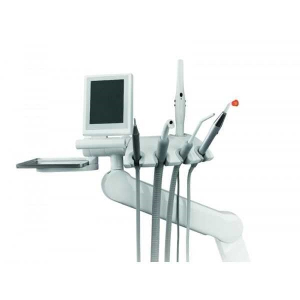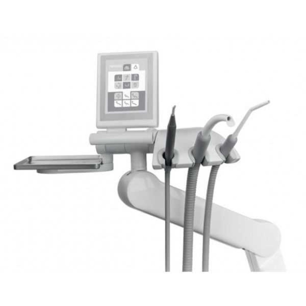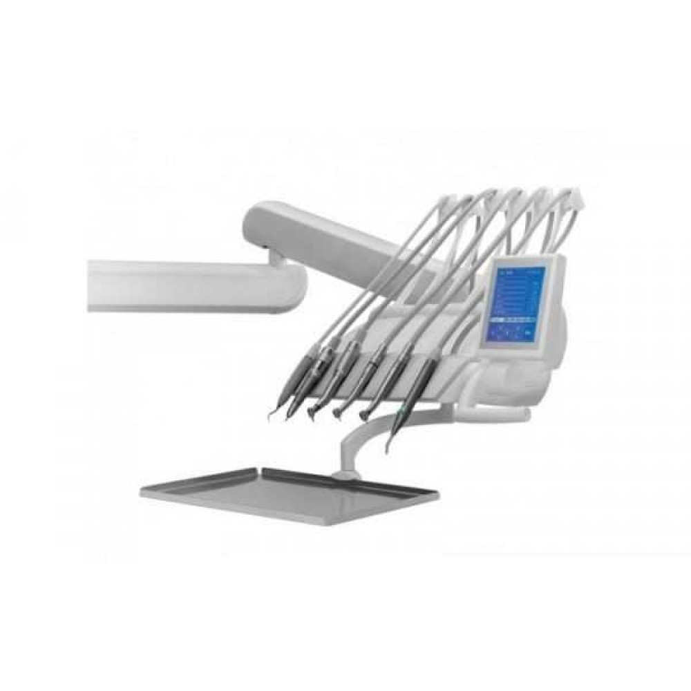 Конструкция столика врача с верхней подачей рассчитана на шесть инструментов. Благодаря специально разработанной электронике, стало возможным устанавливать до пяти ротационных инструментов с подсветкой и подключать до двух бесщеточных микромоторов от фирмы Bien-Air, позволяющих осуществлять широкий спектр операций. Интерактивный сенсорный дисплей позволяет удобно управлять всеми функциями стоматологической установки и кресла.