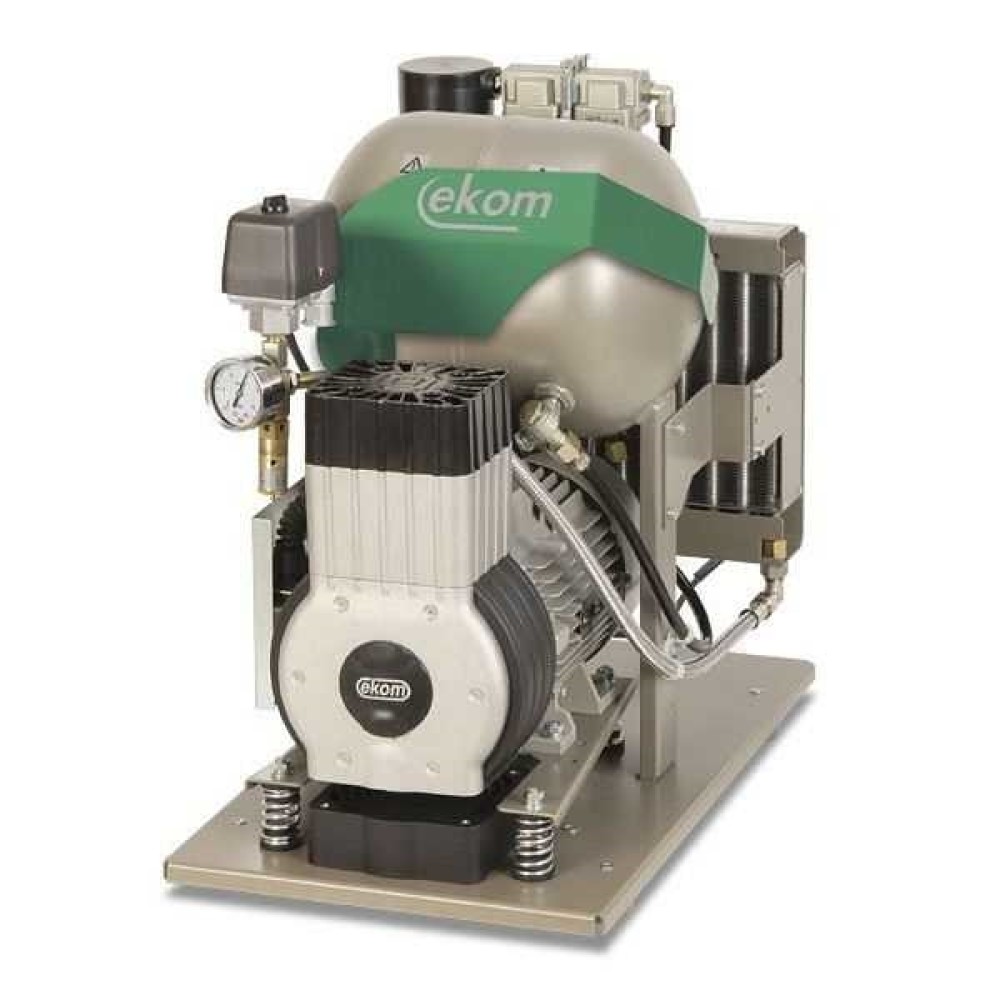 Безмасляный компрессор EKOM серии DK50-10 является источником чистого, безмасляного сжатого воздуха, предназначенного для приведения в движение зубоврачебных приборов и устройств. По своим техническим параметрам и размерам резервуара воздуха объемом в 10 л он является очень удобным для питания самостоятельной сто-матологической установки или комплекта оборудования зубопротезной лаборатории. Сжатый воздух, производимый безмасляным компрессором указанного типа, обеспечивает высокую степень соблюдения гигиены и качества труда стоматолога, не создавая, притом, вокруг себя среду, содержащую чужеродные вещества.