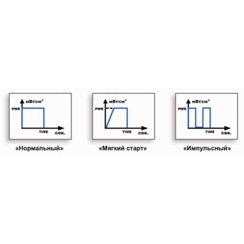 - 3 режима полимеризации: Нормальный, Мягкий старт и Импульсный: