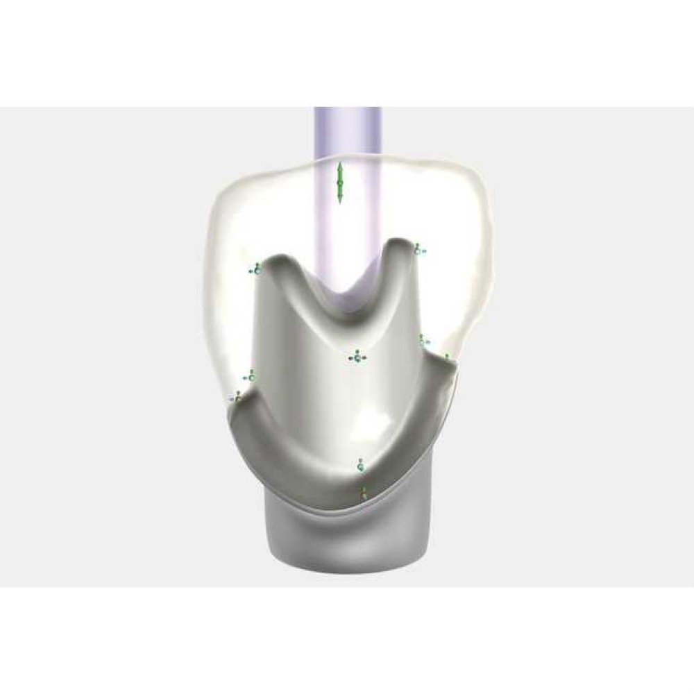 Индивидуальные абатменты и супраструктуры могут одновременно моделироваться в одном CAD-сеансе. Поскольку параметры фрезерования как для абатмента, так и для супраструктуры рассчитываются должным образом в фазе моделирования, становится возможной оптимальная подгонка всех частей за один этап - без промежуточного этапа повторного сканирования полученного абатмента для моделирования супраструктуры.
