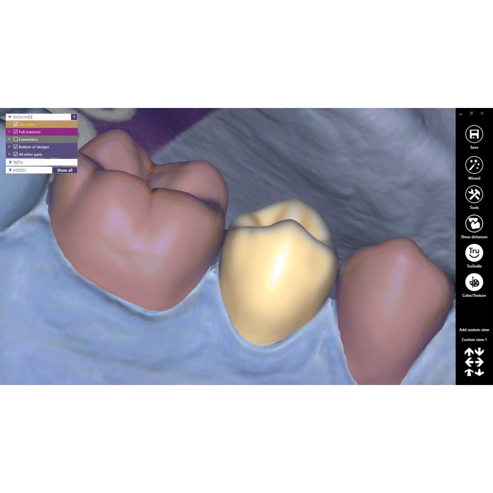 Временные конструкции создаются на основе результатов предоперационного сканирования; форма временной коронки/моста может быть либо скопирована с оригинальной анатомической структуры (если собственный зуб пациента находится в достаточно хорошем состоянии), либо получена из библиотек зубов.