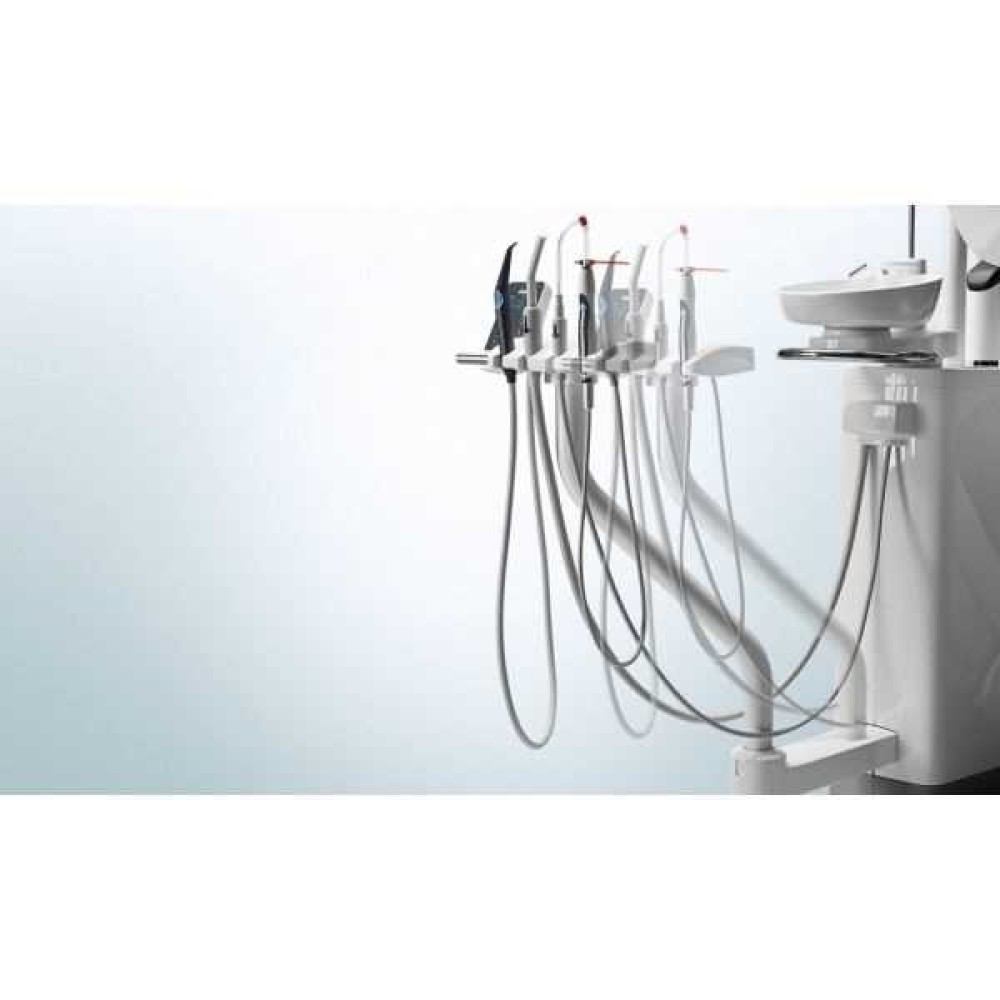 Можно подсоединить до 6 инструментов. Большой выбор конфигураций, включая до 4 высокоскоростных инструментов с подсветкой, 2 бесщеточных электродвигателя, скалер с подсветкой, в том числе эндодонтический, лампу полимеризационного света и стоматологический пистолет вода-воздух. |