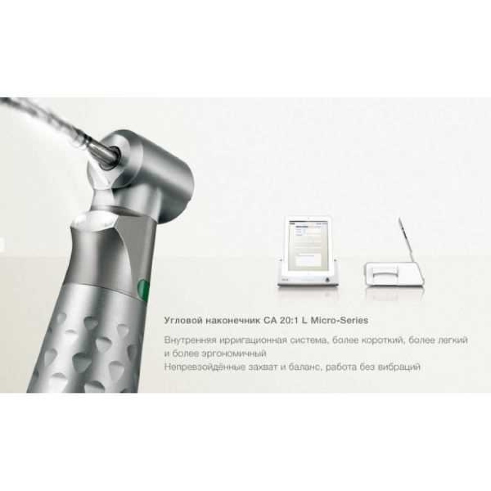- Комплект iChiropro с угловым наконечником CA 20:1 L Micro-Series с подсветкой, кнопочным зажимом бора и внутренним распылителем