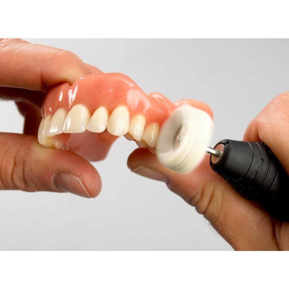 Для зеркальной полировки пластмассовых зубов и виниров с помощью микромотора.