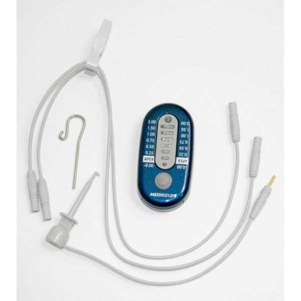 - Цифровой апекслокатор для определения точной рабочей длины корневого канала. В апекслокатор входит уникальный алгоритм, позволяющий измерять расстояние до апекса с шагом 0,1 мм