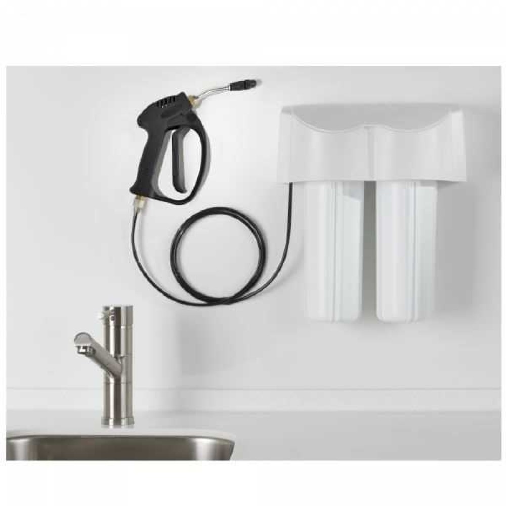 При помощи ионообменного фильтра MELAdem 40 вы можете недорого производить высококачественную деминерализованную воду непосредственно на рабочем месте. В соответствии с принципом ионного обмена, присутствующие в водопроводной воде ионы (кальция, магния и т.п.) могут быть удалены из воды и замещены ионами водорода. Таким образом MELAdem 40 может обеспечить вас высококачественной деминерализованной водой. MELAdem 40 может быть непосредственно подсоединён к автоклавам MELAG Европейской серии Vacuklav, Vacuquick и Euroklav и автоматически снабжать их необходимым количеством высококачественной деминерализованной воды при каждой стерилизации.