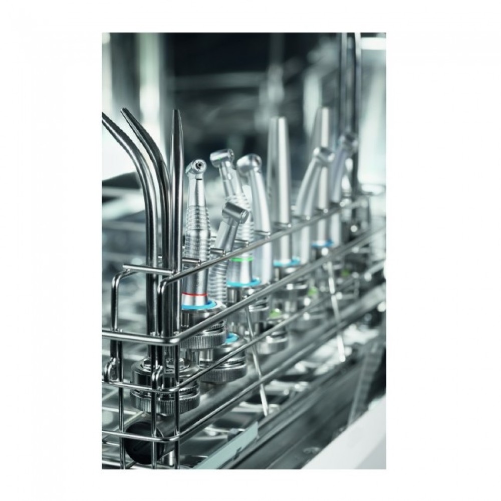 Загрузка и дозировка моющих средств, сушка инструмента производятся автоматически. Основной загрузочный модуль вмещает 6 моечных корзин. До 11 инструментов с внутренними полостями (например, полые иглы, трубки, стоматологические наконечники) могут быть одновременно обработаны при помощи инжекторной штанги.