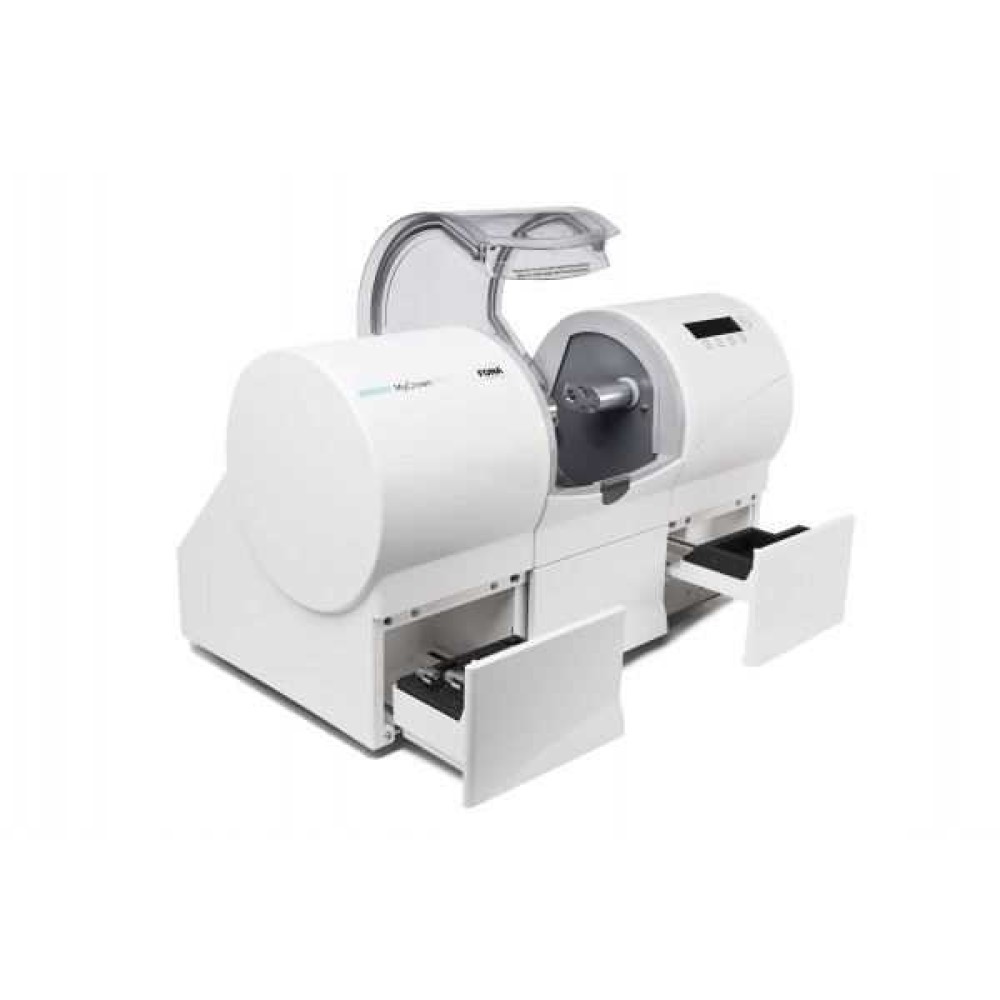 Сразу же готовый к использованию, MyCrown Mill связывается с программным обеспечением через беспроводное соединение, может обслуживать несколько сканнеров , просто включается в розетку и не требует подключения к системе водоснабжения и подачи воздуха, что делает его пригодным практически для всех помещений. Двухосная система с фрезерными и шлифовальными свойствами обеспечивает высокоскоростные реставрации, в среднем 12 минут для изготовления одной коронки. Устройство компактное, что позволяет ему вписаться в любой стоматологический кабинет.