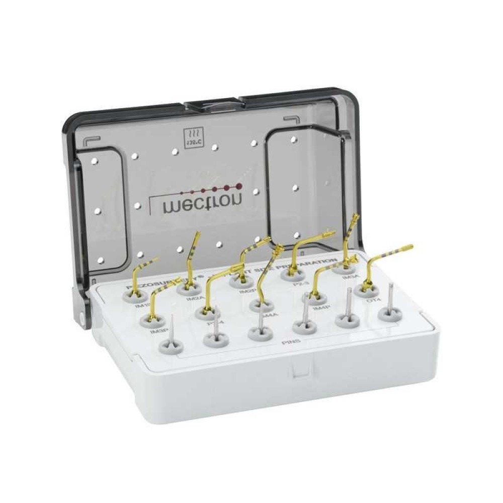 Насадки для аппаратов Piezosurgery TOUCH или Piezosurgery WHITE могут поставляться отдельно или в наборах. Набор в отличии от отдельной насадки укомплектован специальным боксом, который обеспечивает эффективную стерилизацию и надлежащие условия хранения.