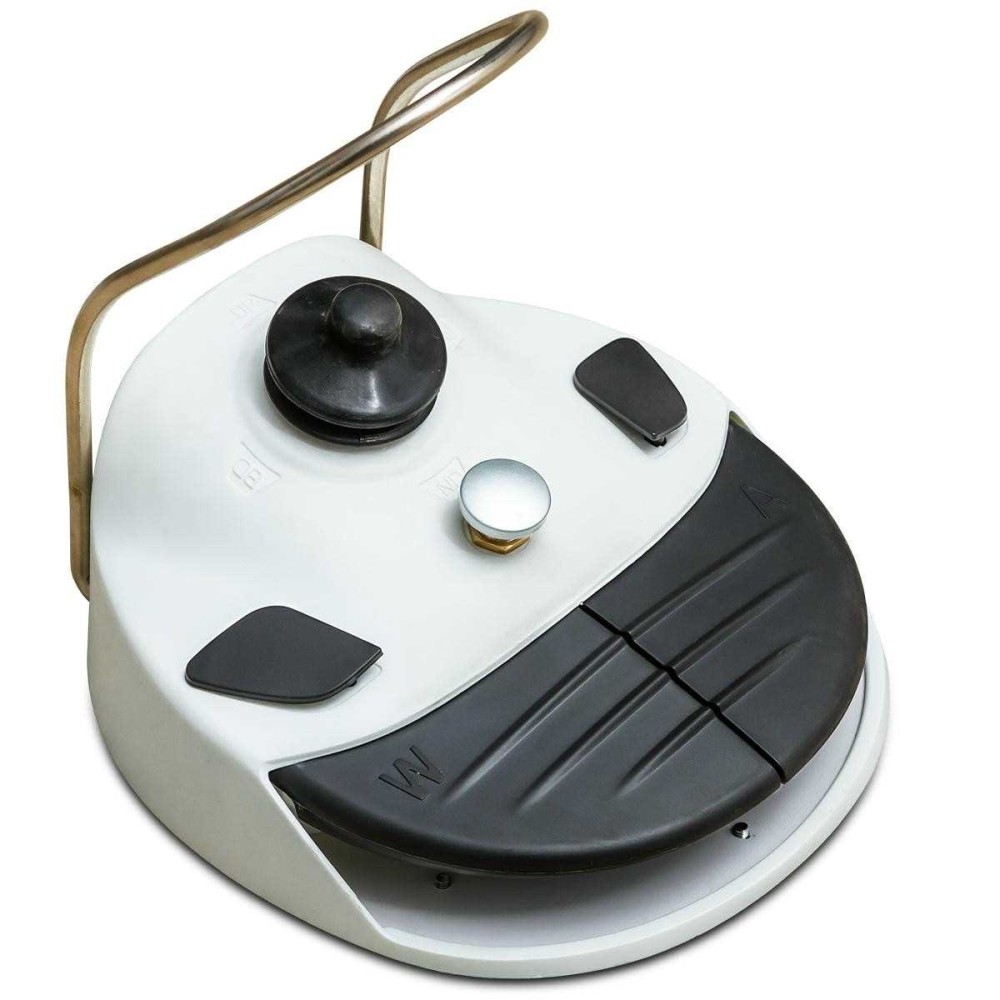 Механизм регулировки движения кресла, подачи воды и воздуха на инструмент, имеет пластиковый корпус, металлическую ручку с джойстиком и кнопками.