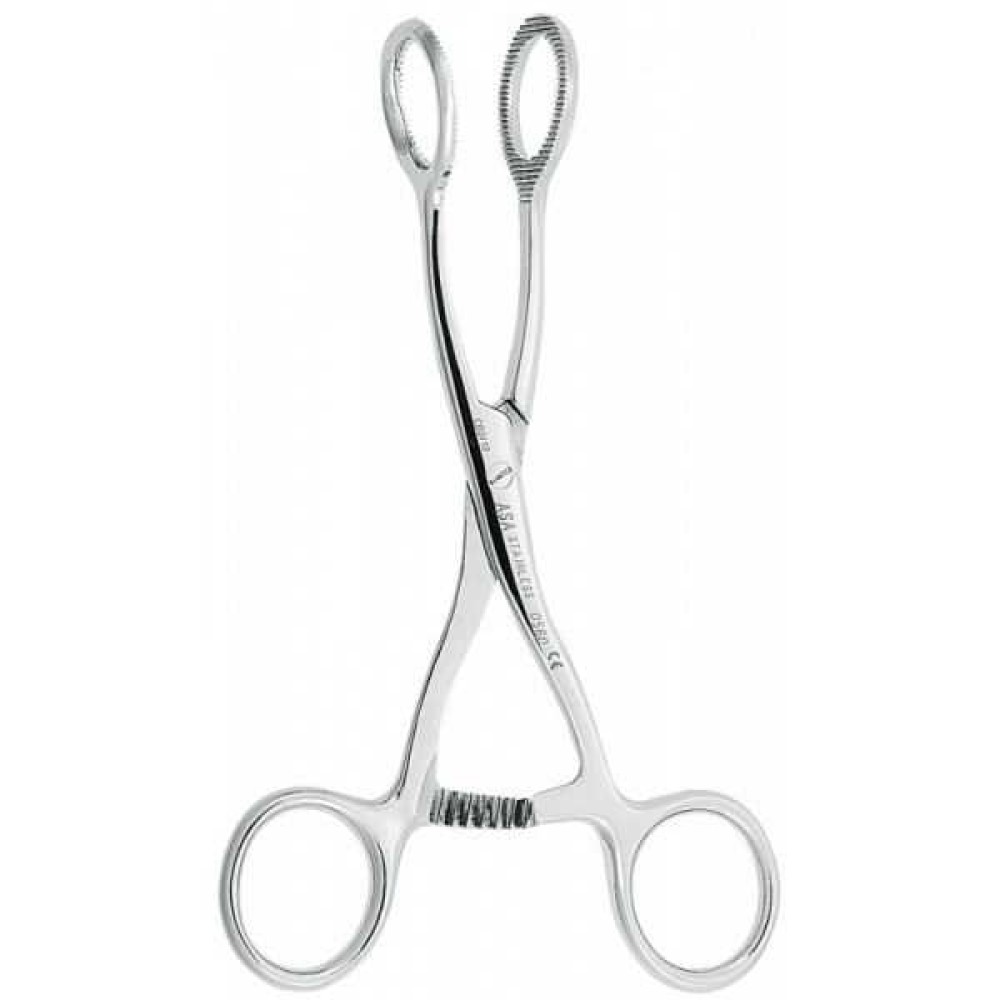Пинцет для языка с круглой рабочей частью и фиксатором на ручке, изогнутый,17 см