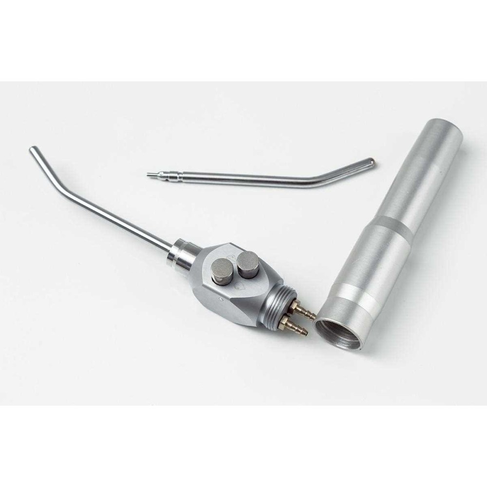 Подает воду и воздух, смесь из воды и воздуха, состоит из ручки с кнопками и носика. Соединен шлангом со столиком врача. Выполнен из дюралевого сплава.