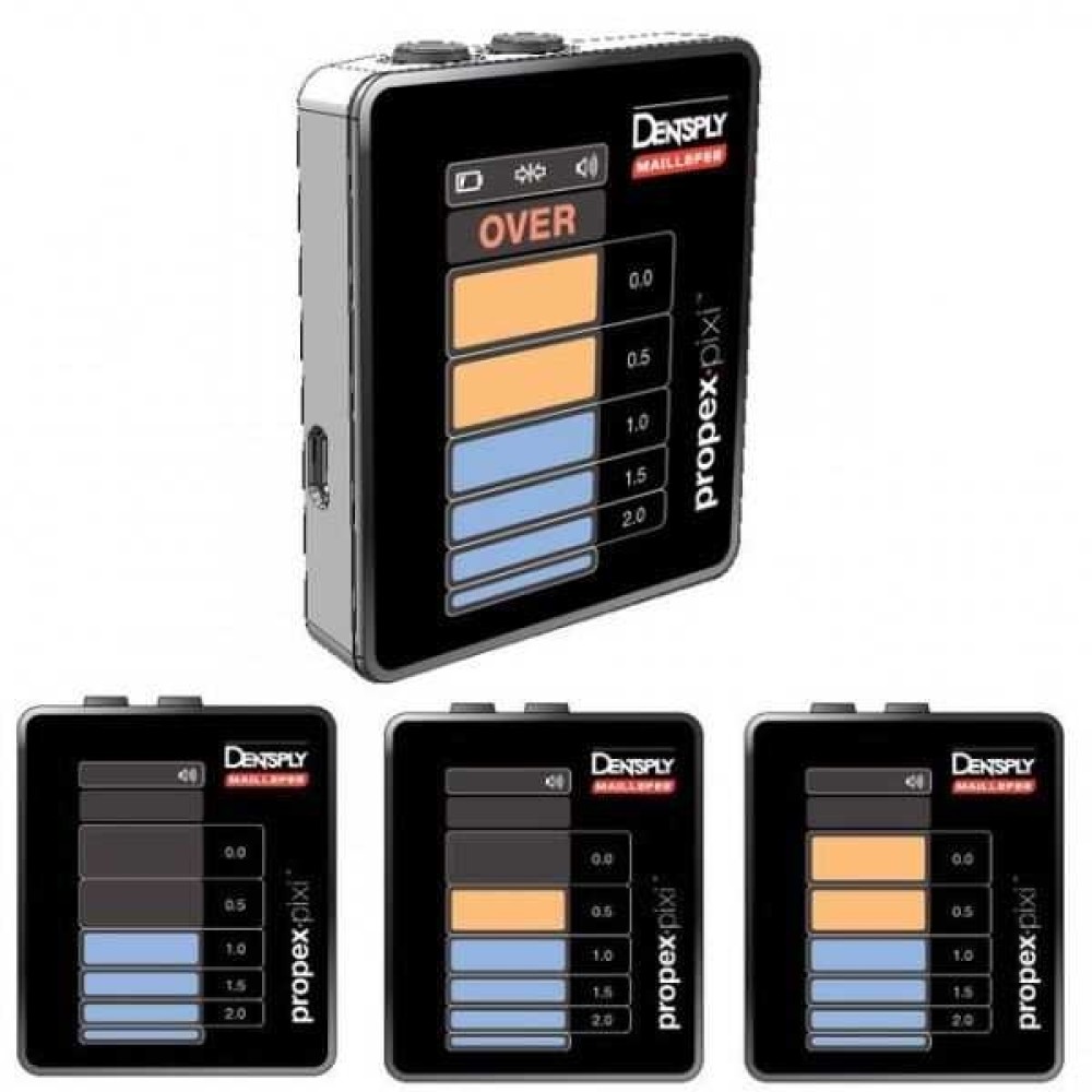 Propex Pixi представляет собой электронное устройство для локализации верхушки корня зуба во время лечения корневого канала. Портативный апекслокатор Propex Pixi нового поколения со встроенной многочастотной технологией и функцией апикального увеличения, которая включается при достижении файлом апикальной области, помогая стоматологу локализовать апекс в большинстве корневых каналов. Маленькие габариты позволяют разместить аппарат на груди пациента, имеет цветной дисплей, работает от подзаряжаемого аккумулятора. Звуковая индикация с нарастающим звуком - четыре звуковых уровня.