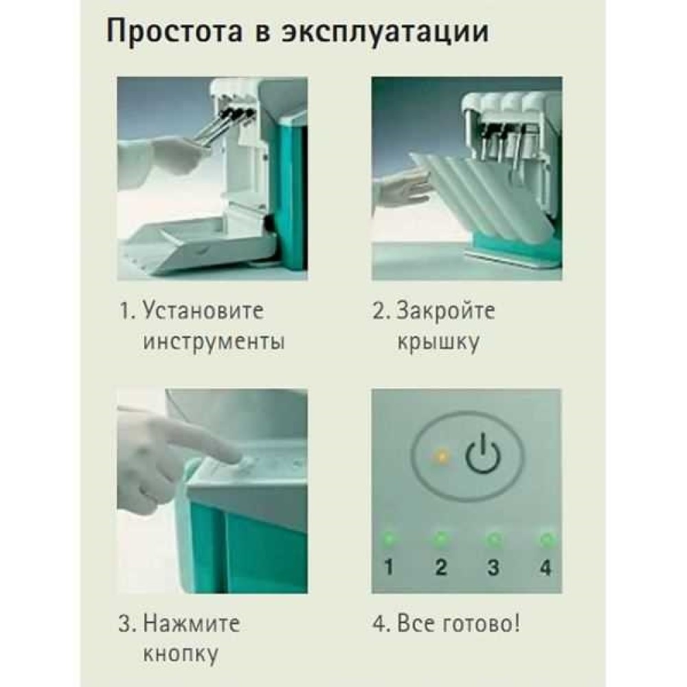 - Качественная и гигиеничная обработка четырех инструментов в течение 60-ти секунд!