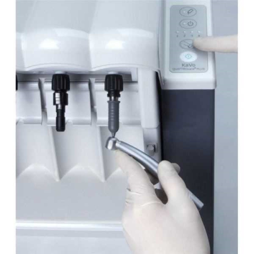 KaVo QUATTROcare Plus 2124A - программно-управляемый прибор для чистки и смазки турбинных, угловых наконечников, а также головок к наконечникам. Прибор дополнительно подключается к источнику сжатого воздуха для дополнительной продувки спрей каналов и удаления излишков масла.