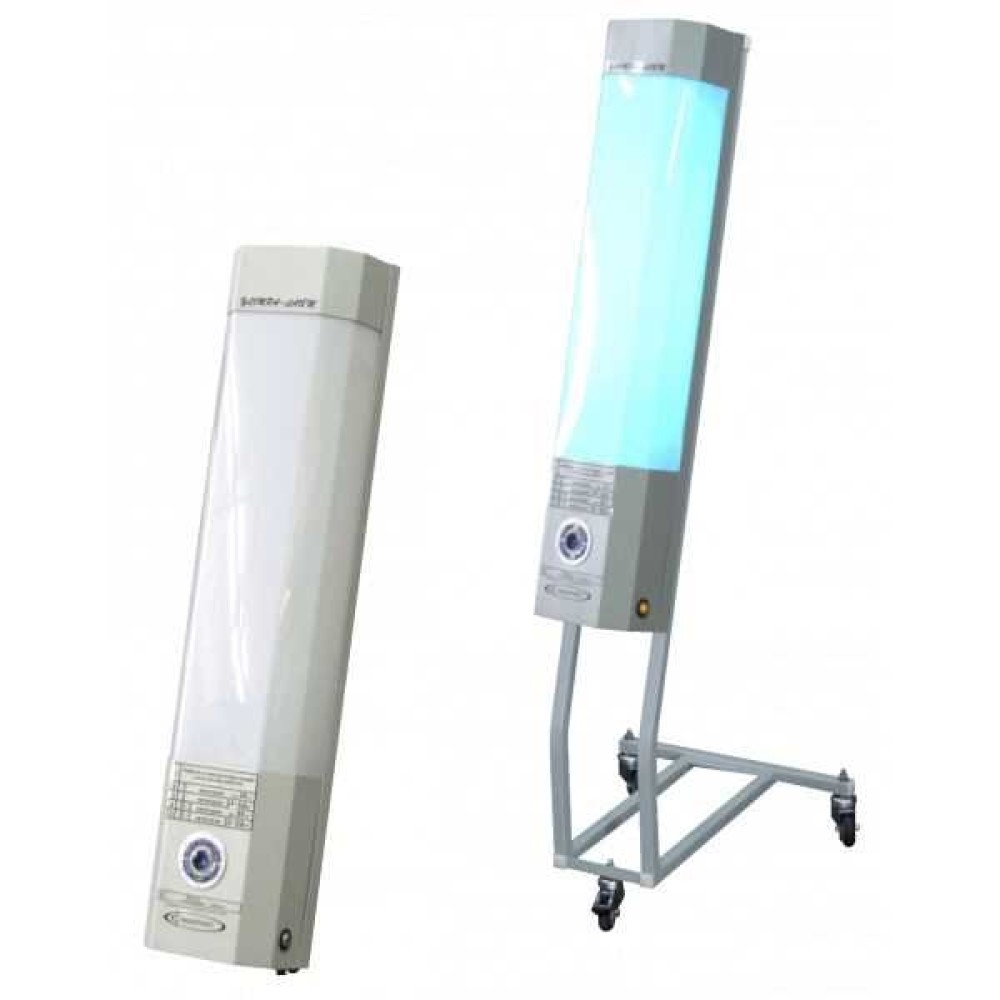Передвижной вариант (опция) содержит дополнительную подставку на четырех колесных опорах с резиновым покрытием для уверенного перемещения по поверхности пола. Тип установки рециркулятора на подставку вертикальный, конструкция расположения колесных опор предотвращает столкновение с мебелью и стенами кабинетов ЛПУ.