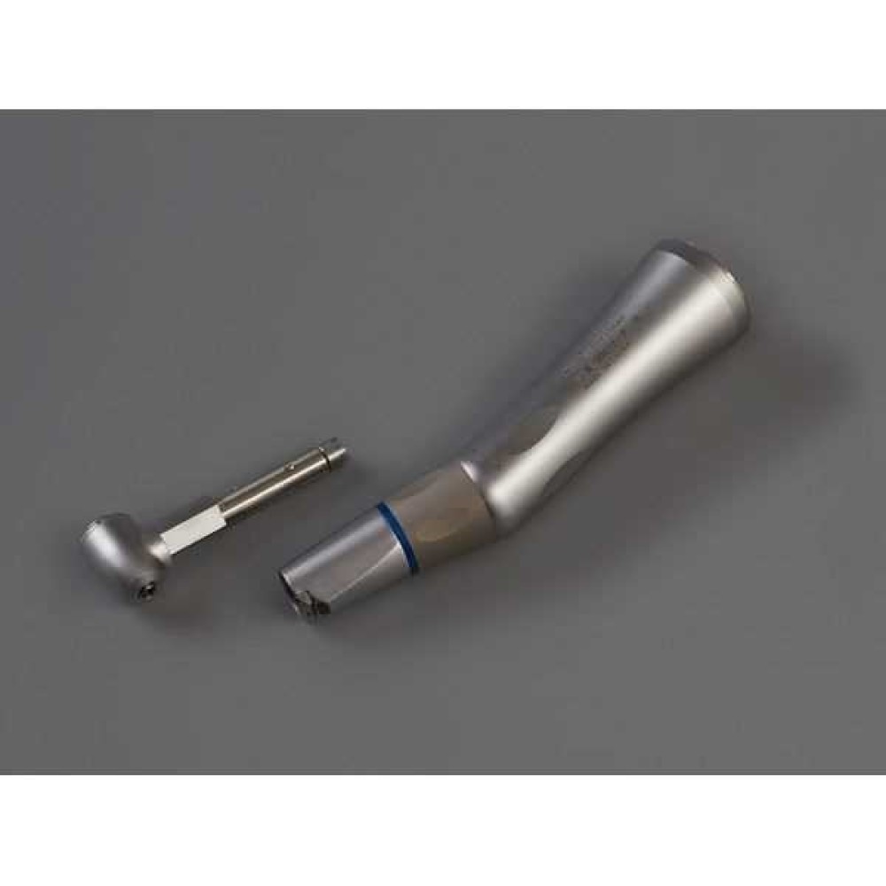 Наконечник угловой, стоматологический, стерилизуемый, со съёмной головкой, внутренним подводом охлаждающей среды, с подсветкой.