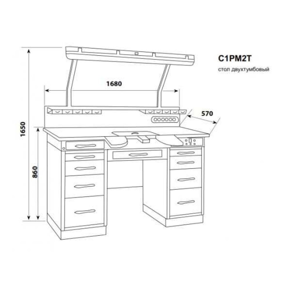 СРТ2Т - стол рабочий двухтумбовый 1680 мм, базовый вариант на 1 рабочее место. Светодиодная лампа.