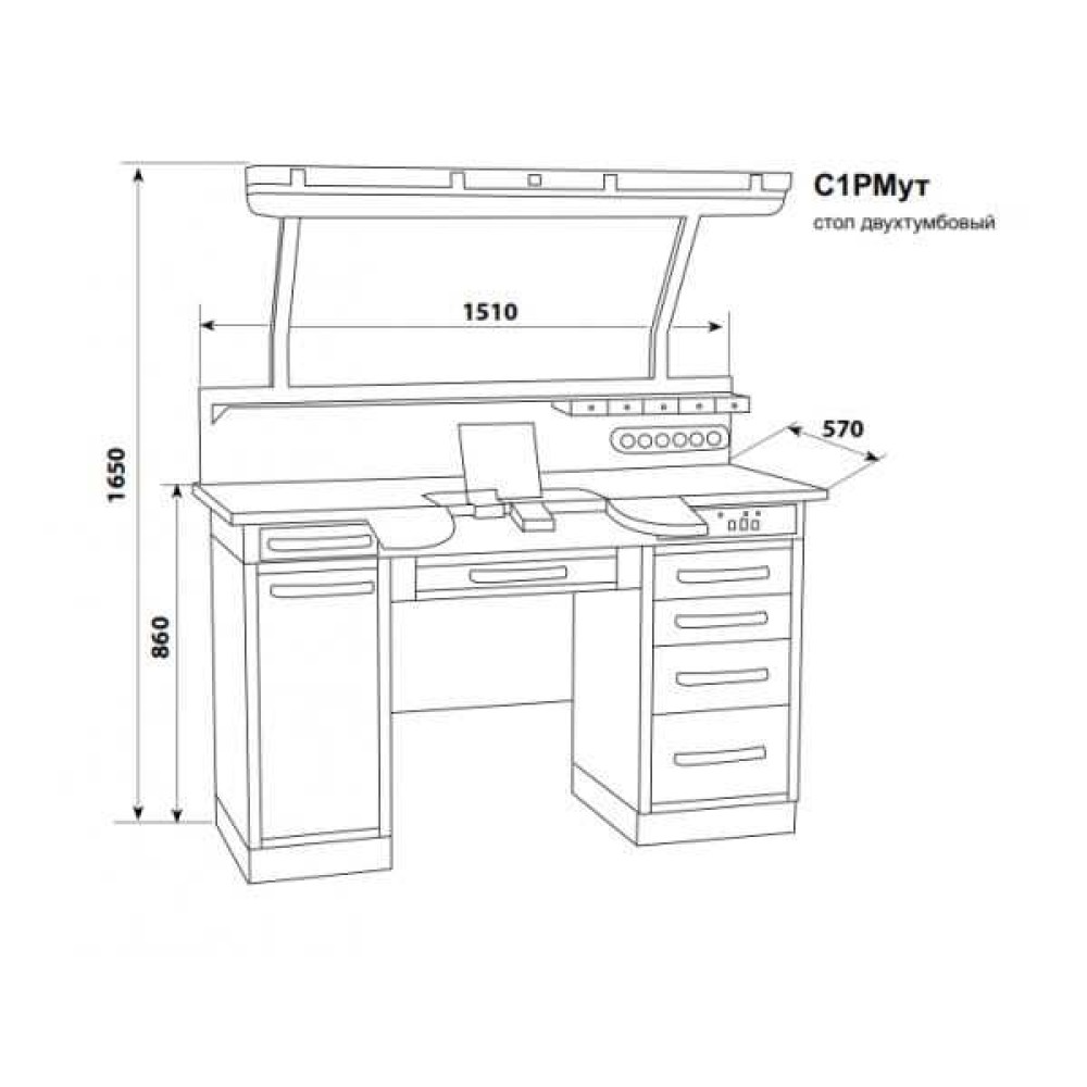 С1РМут - стол рабочий двухтумбовый (зуботехнический) 1510 мм, базовый вариант на 1 рабочее место