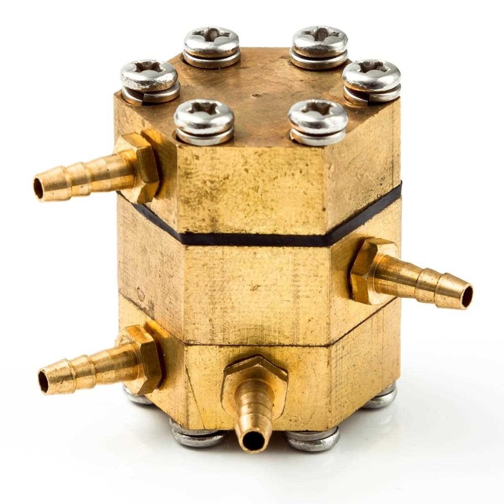 Открывает подачу воды на клапана инструментов с помощью воздуха. Расположен в модуле врача и выполнен из латунного сплава.