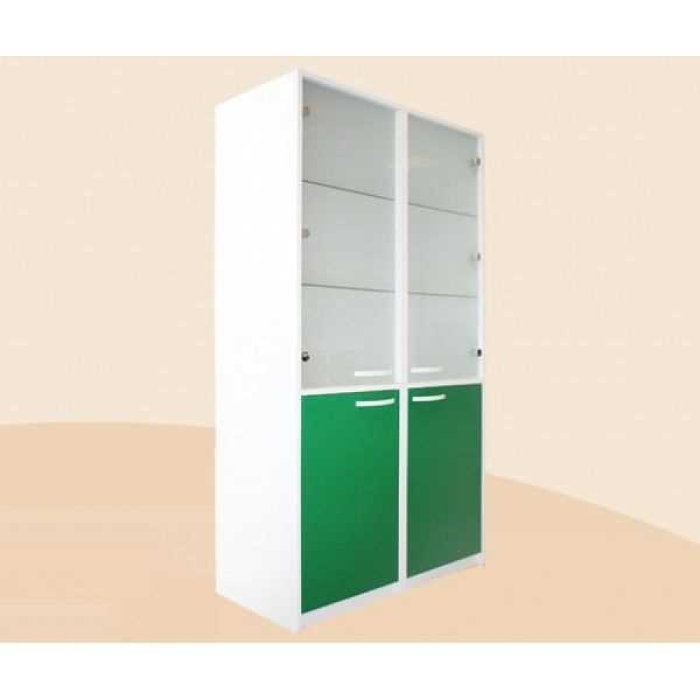 ШМ-А6 - шкаф двухстворчатый, верх - дверца из прозрачного стекла в металлическом обрамлении и 2 полки, низ дверца металл и одна полка 1860х1000х495 мм