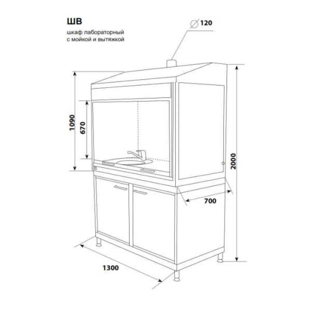ШВ - шкаф лабораторный с мойкой и вытяжкой, 1300 мм