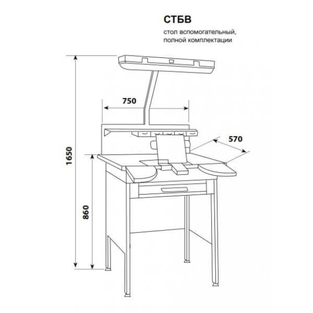 СРТВ - стол вспомогательный (зуботехнический) полной комплектации с В. У. и регулятором 750 мм. Светодиодная лампа.