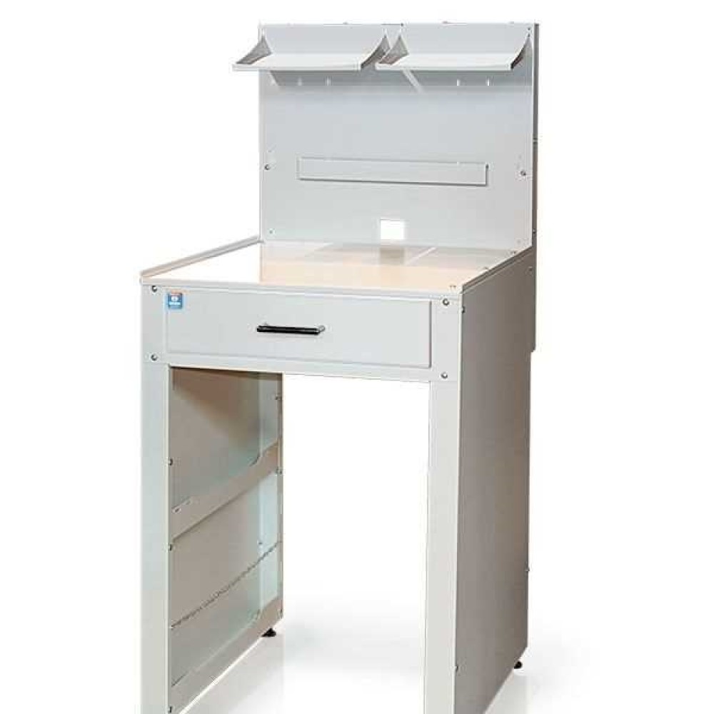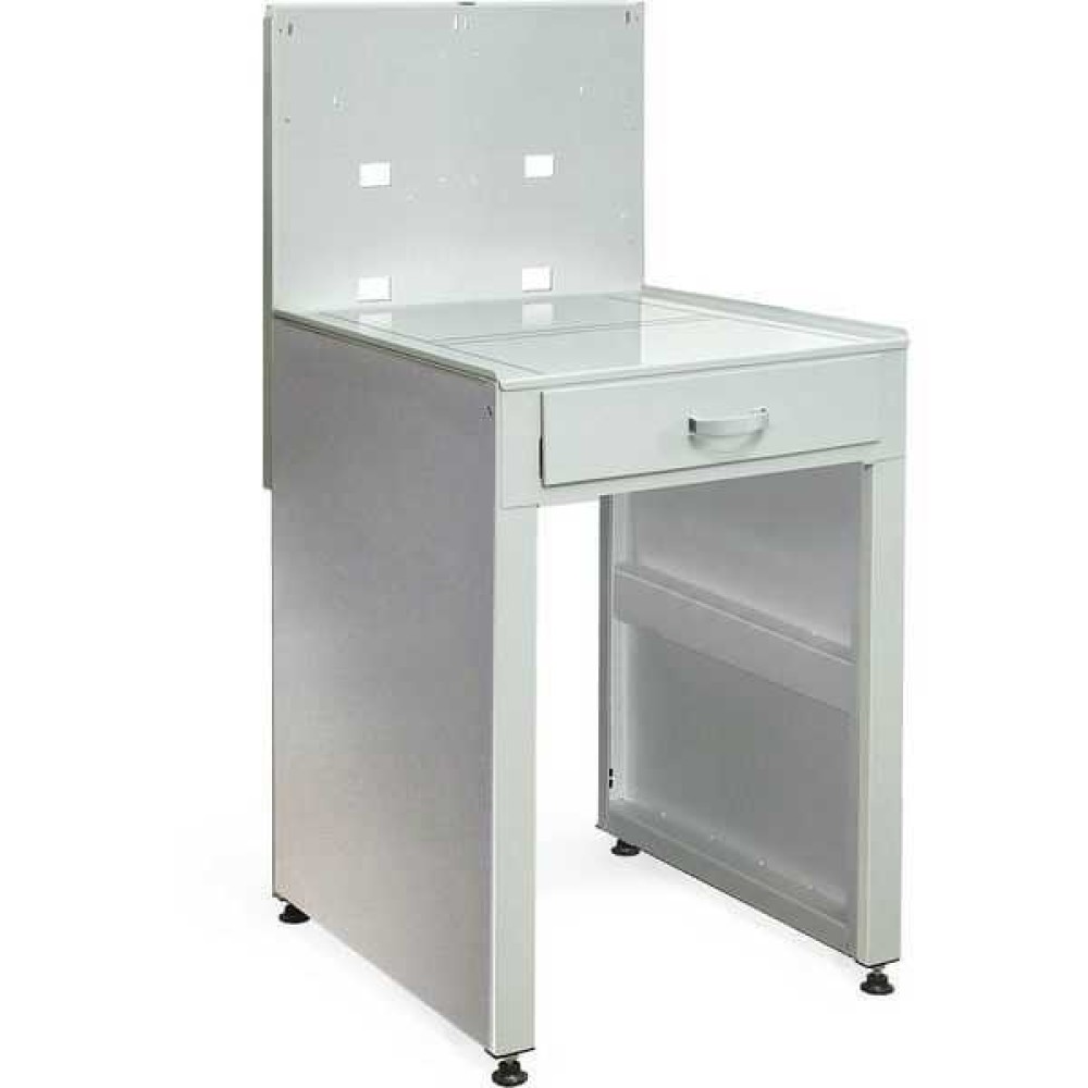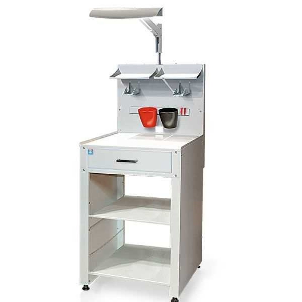 Универсальный лабораторный стол (высота столешницы 830 мм, ширина 570 мм.) для организации общих рабочих мест в зуботехнических и литейных лабораториях: пескоструйная обработка, полировка, полимеризация, пайка, разогрев опок, прочее. Расширение функциональных возможностей с помощью дополнительных специализированных наборов (см. ниже).