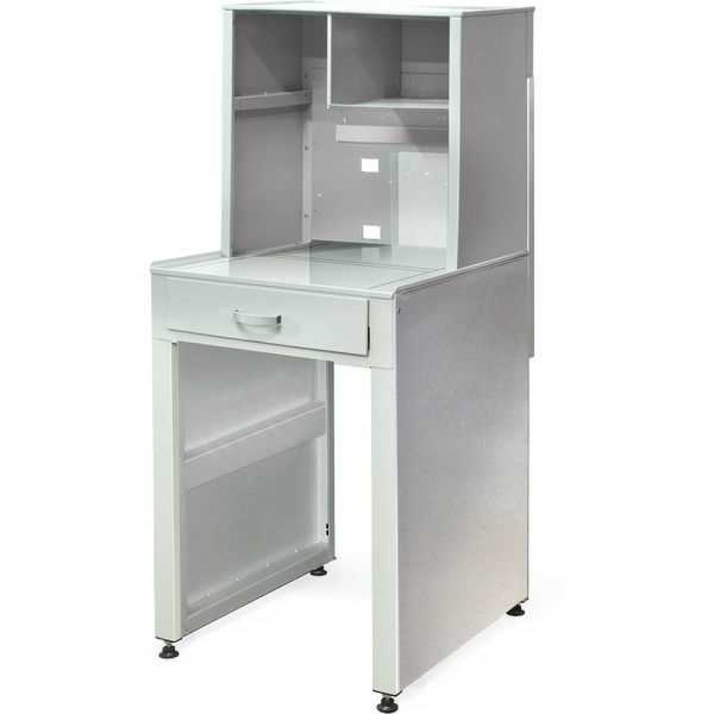 - Полностью металлическое исполнение. Выдвижной ящик для хранения, задняя многофункциональная объемная стенка с тремя положениями по высоте.